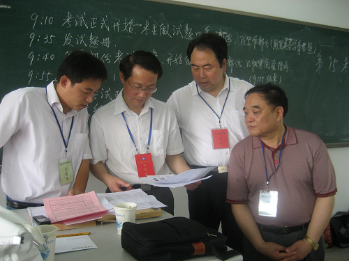 6月20日,省委教育工委常务副书记张荣国,省教育招生考试院巡视员、省教育纪工委副书记宣进,校党委书记卞国忠,校党委副书记、院长章尧,副院长、主考李朝品、纪委书记李刚、监审处处长钱门祥亲临考试现场,对我校各考场进行巡视。