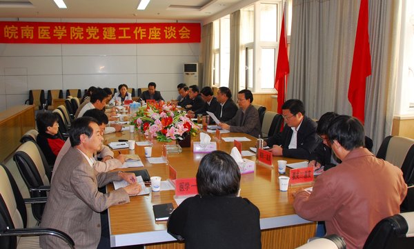 为深入学习实践科学发展观,探索新形势下加强党建工作的新思路、新举措,不断加强党的执政能力建设和先进性建设,10月24日下午,我校召开由党委各部门、附院党委、各党总支、团委主要负责同志参加的党建工作座谈会,党委书记卞国忠、党委副书记、院长宋建国、党委副书记郑勇超同志参加了会议。会议由组织部长周强同志主持。