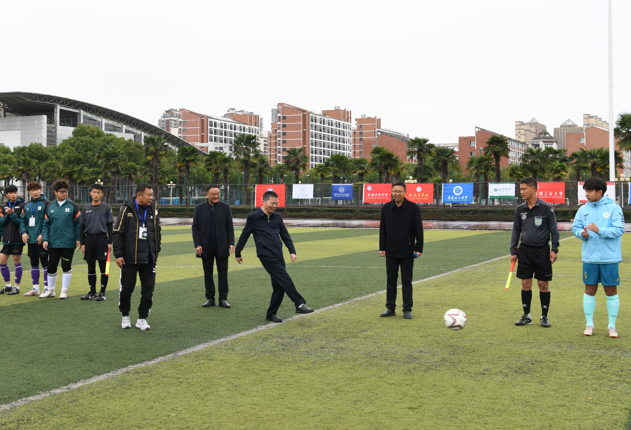 11月18日上午,2024年安徽省校园足球联赛(大学)男子甲组比赛在我校拉开序幕。校党委副书记、院长姚应水,安徽师范大学体育学院负责人及我校公共基础学院党政负责人参加揭幕战开球仪式。姚应水宣布比赛开始并为揭幕战开球。
