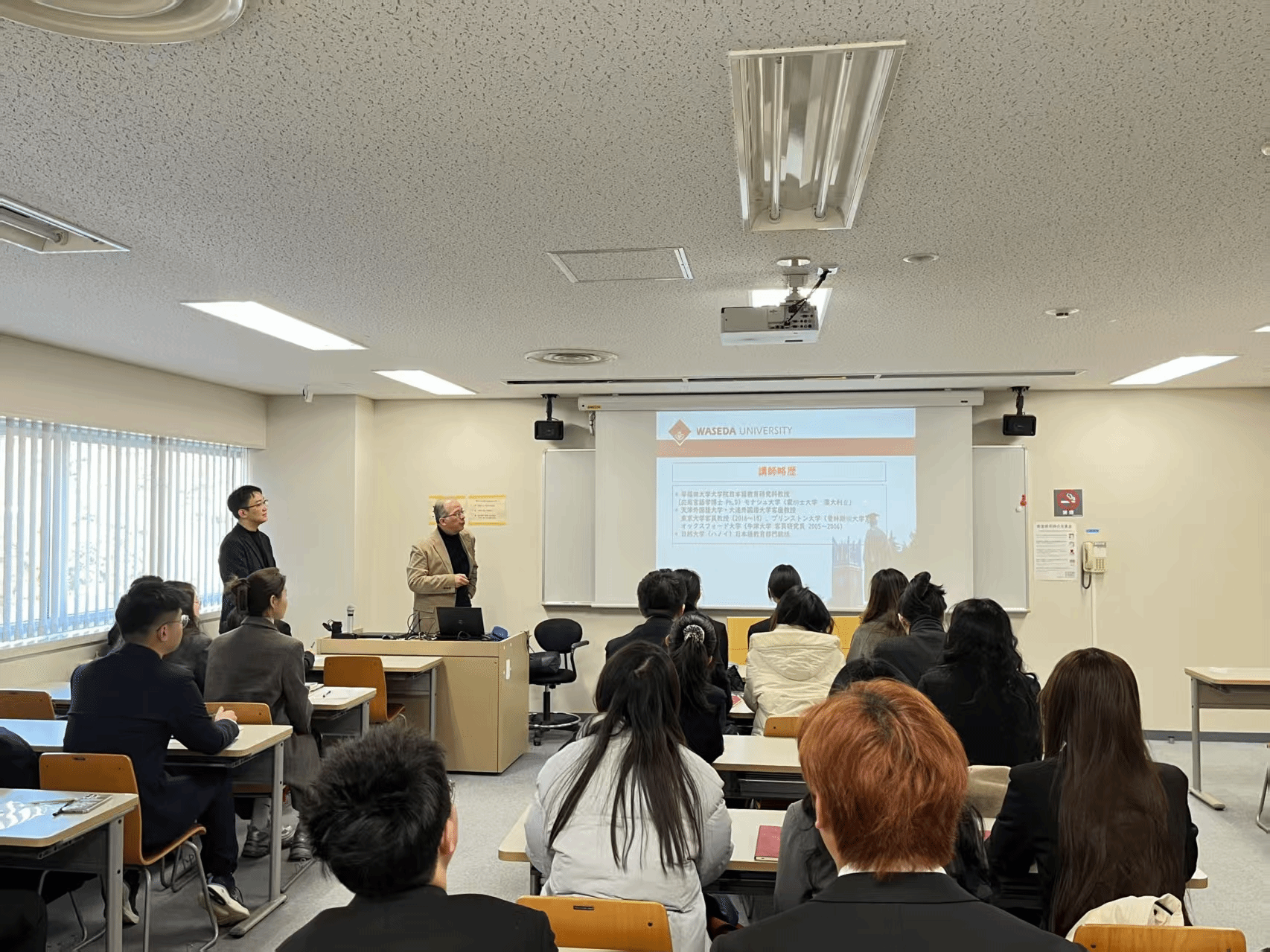 在早稻田大学期间,校方安排了一系列内涵丰富、生动详实的专业课程和学术讲座,包括宫崎教授的日语教育讲座、樋口教授的“日本的企业文化”课程、原教授的“日本科学技术开发战略及应用”课程等。高水平的课程与讲座兼具深度与广度,让同学们在短时间内对日本有了较为全面的认识,课堂上多次响起热烈掌声。在小组讨论环节,来自安徽省各高校的同学围绕课程内容各抒己见,分享自己的见解与想法,不仅加深了对知识的理解,也收获了友谊。