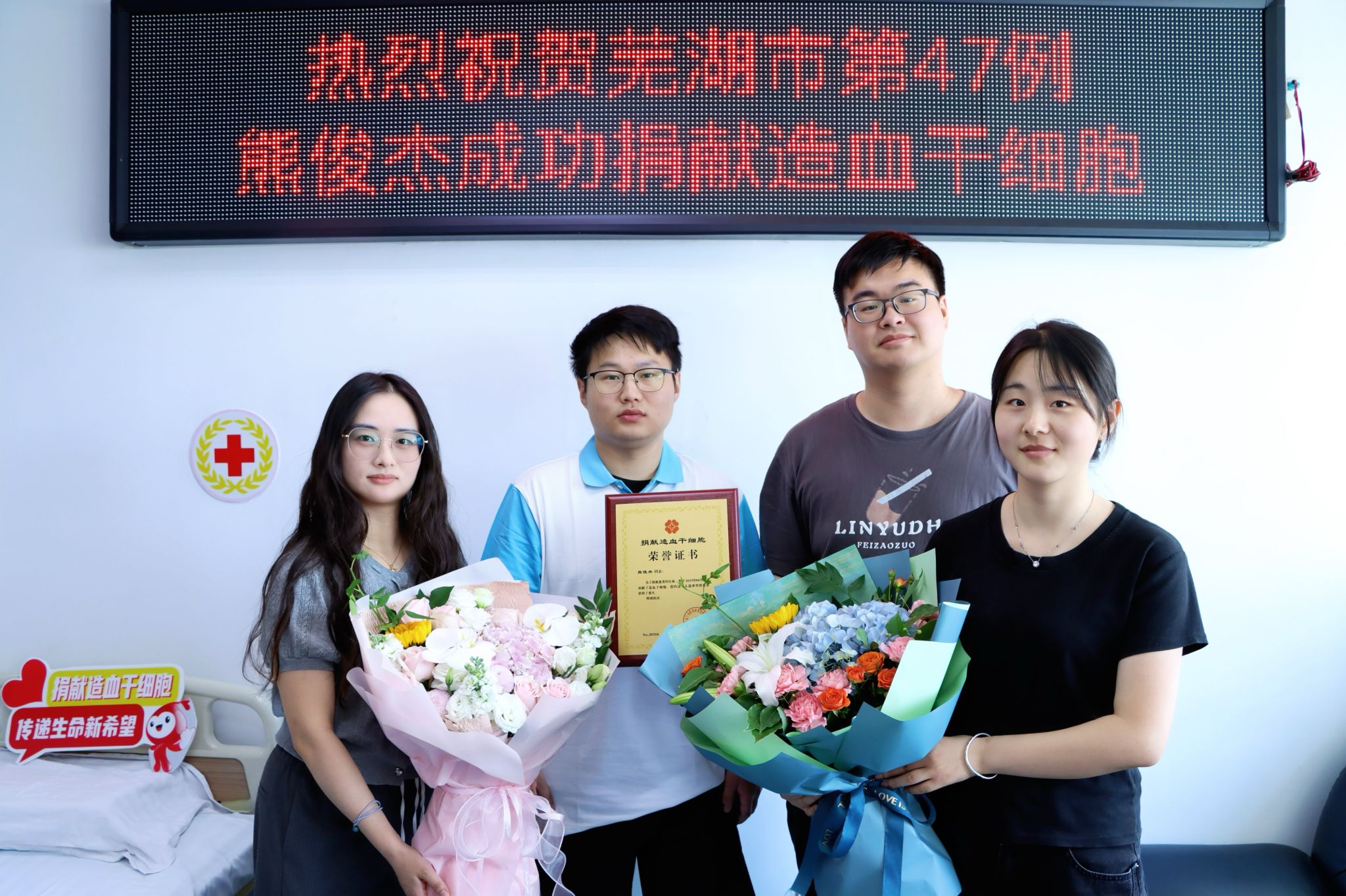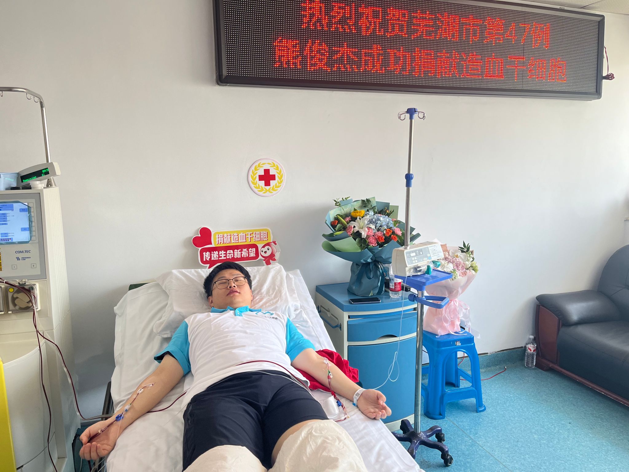 6月16日,在我校第一附属医院血液科病房,一场关乎生命延续的"爱心接力"温暖上演——我校2020级临床医学专业学生熊俊杰成功完成造血干细胞捐献,为一名血液病患者点燃重生希望。他不仅成为我校第5例在校生捐献者,更以芜湖市第47例、安徽省第766例捐献者的身份,为生命接力事业添上浓墨重彩的一笔。