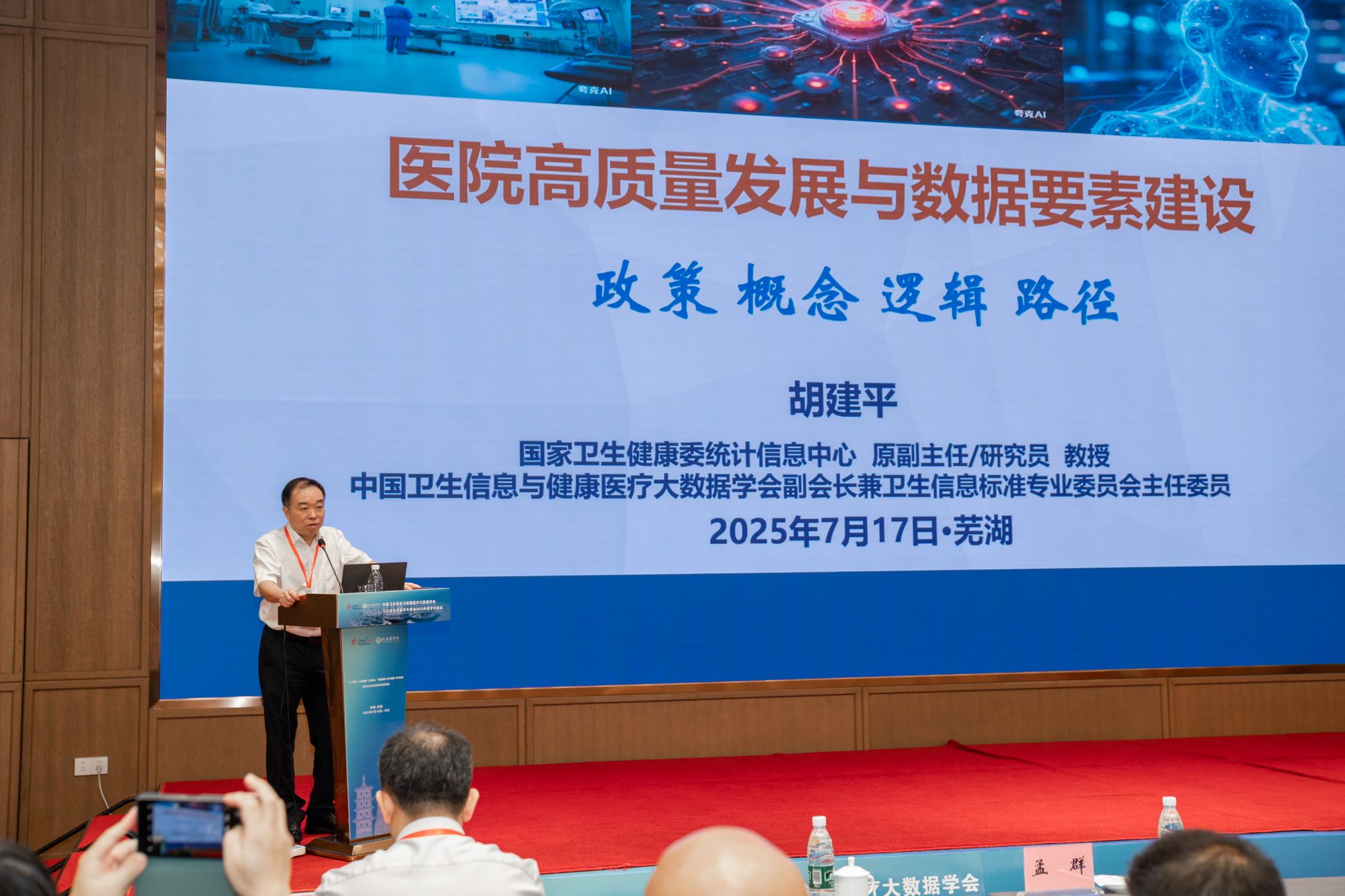 大会报告环节由芜湖市医院管理中心主任陈韧、我校医学信息学院副院长叶明全主持。中国卫生信息与健康医疗大数据学会副会长胡建平教授,中国医学科学院医学信息研究所所长刘辉研究员,中国科学技术大学先进技术研究院副院长陈勋教授,卫生信息学教育专委会主任、河北省人口健康信息化技术创新中心主任张晓教授等分别作《医院高质量发展与数据要素建设》《医学人工智能的伦理与法律挑战:技术发展与社会治理的平衡》《脑机接口多源神经信号计算》《基于大模型的医共体综合信息平台及衍生服务》等特邀报告,围绕医疗数据要素、医学人工智能伦理、脑机接口、医共体大模型等最新发展,科技与产业融合发展前沿成果等进行分享。