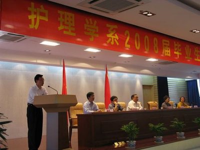 5月15日下午,护理学系在图书信息大楼三楼学术报告厅召开了2008届毕业生文明离校教育大会,护理学系2008届本、专科共197名毕业生参加了会议。校党委书记卞国忠、党委副书记郑勇超、学生处处长钱何珍、副处长阮笑芳等同志也亲临大会现场。会议由系副主任朱丹同志主持。