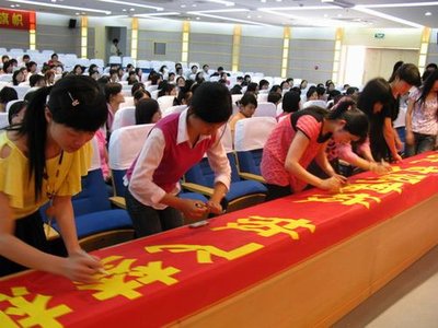 最后,举行了文明离校签名活动,全体2008届毕业生在“成长思源,毕业思进,文明离校,放飞梦想”大型横幅上郑重签下自己的名字。
