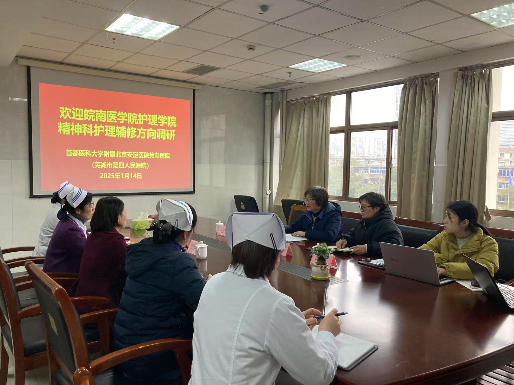 为深入贯彻落实省政府关于深化高校学科专业结构改革服务产业创新发展的文件精神,着力培养高水平复合型人才,提升护理学专业服务社会能力,1月14日和15日,护理学院赴首都医科大学附属北京安定医院芜湖医院、首都医科大学附属北京天坛医院安徽医院开展微专业建设调研。