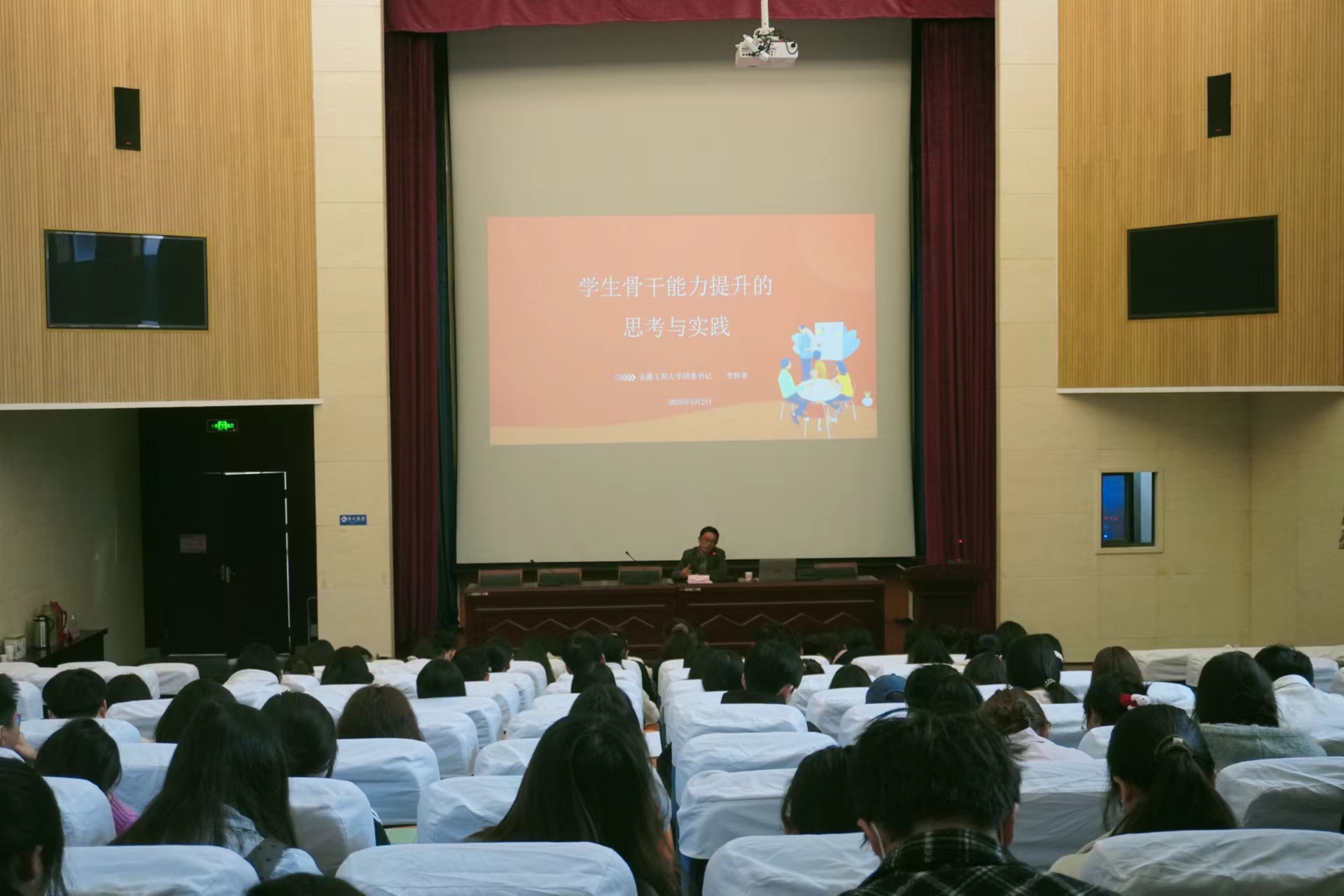为深入学习贯彻习近平新时代中国特色社会主义思想和党的二十大精神,落实习近平总书记关于青年工作的重要思想,扎实做好校青马学员的培养工作,3月2日,我校第十六期青年马克思主义者培养工程专题讲座在滨江校区北区逸夫楼报告厅举行。校团委邀请芜湖市团市委副书记谢翔宇、安徽工程大学团委书记李恒奎、我校习近平新时代中国特色社会主义思想概论教研室主任郭玉琼为全体学员作讲座。讲座由校团委兼职副书记李飞飞主持,第十六期青马班全体学员参加学习。