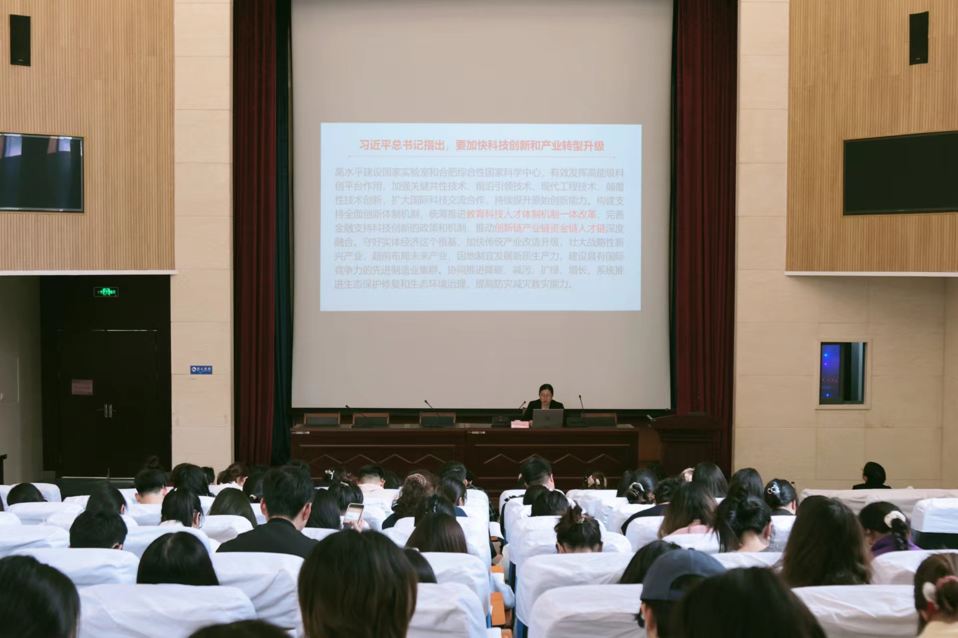 郭玉琼以《牢记殷切嘱托,争当改革先锋》为题,带领同学们学习了习近平总书记考察安徽重要讲话精神。她指出要以习近平总书记重要讲话精神为指引,深入学习贯彻党的二十大和二十届三中全会精神,增强历史主动,勇担时代重任,勇于创新、顽强拼搏,积极投身高质量发展壮阔实践,在新征程上奋力谱写中国式现代化新篇章。