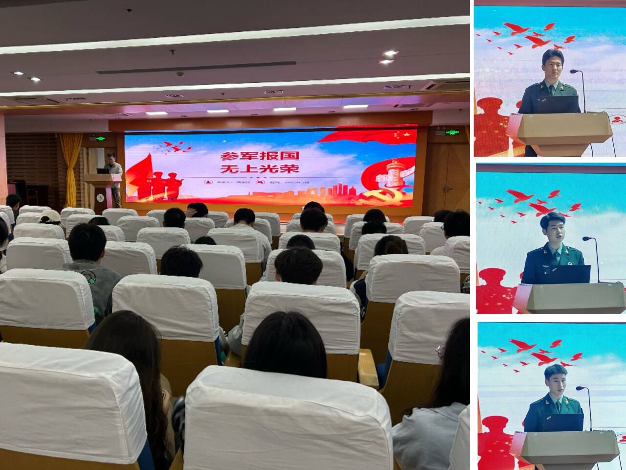 为进一步贯彻落实国家征兵政策,激发青年学子参军报国热情,积极推进征兵工作,5月26日,医学影像学院举行“青春有梦  强军有我”大学生入伍专题宣讲会,邀请学生处人武部武宇洋老师主讲,多位优秀退役士兵代表到场分享军旅经历,2022级辅导员叶兰和年级全体学生参加。