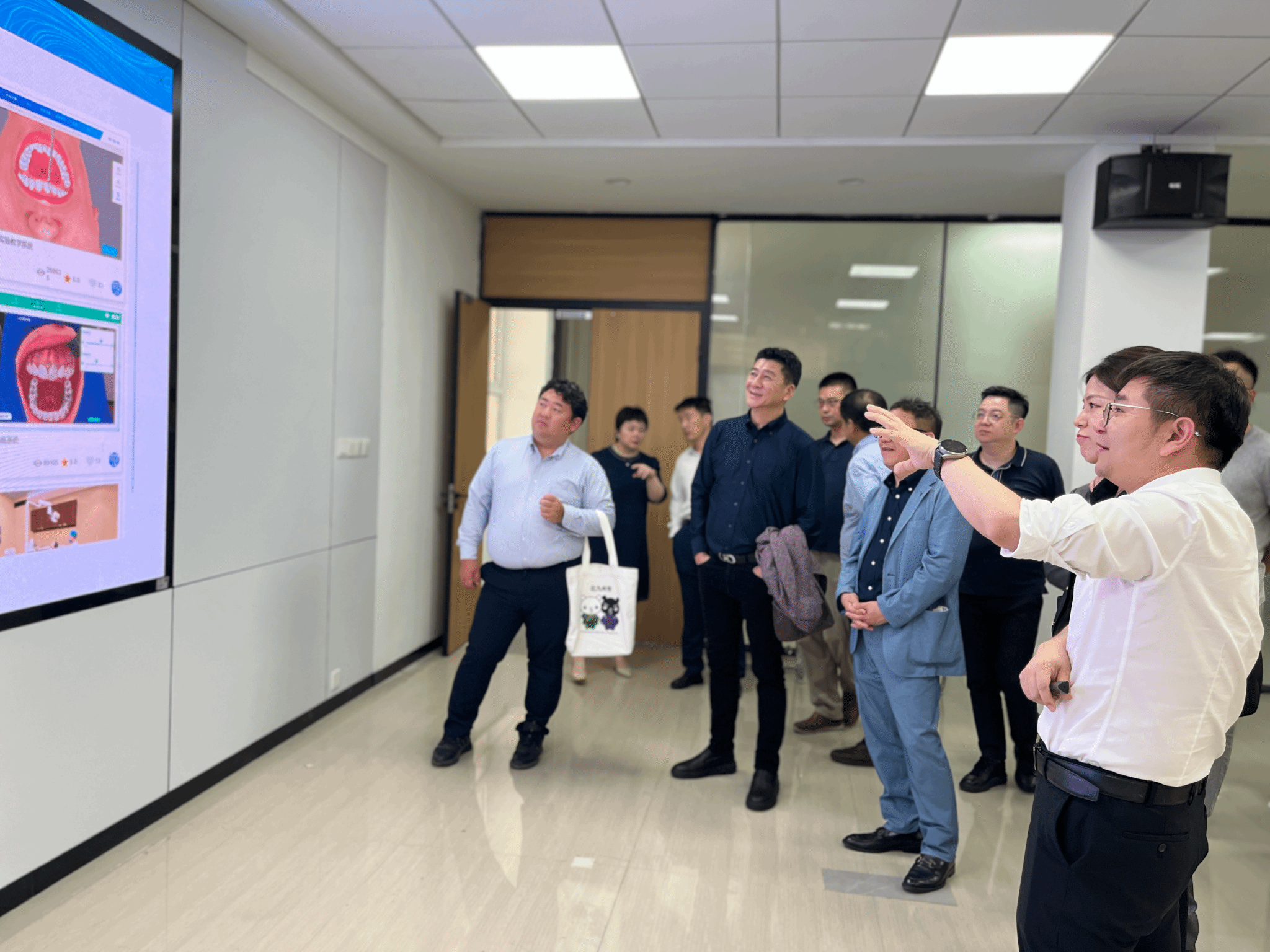 专家团队在邓超带领下参观了口腔医学中心虚拟仿真实验室、仿真头模实验室,并亲身体验了虚拟仿真实验。日本专家高度评价了口腔医学院实验室的数字化建设成果,认为其显著提升了临床教学效率,为学生的实践能力培养提供了前沿技术支持。