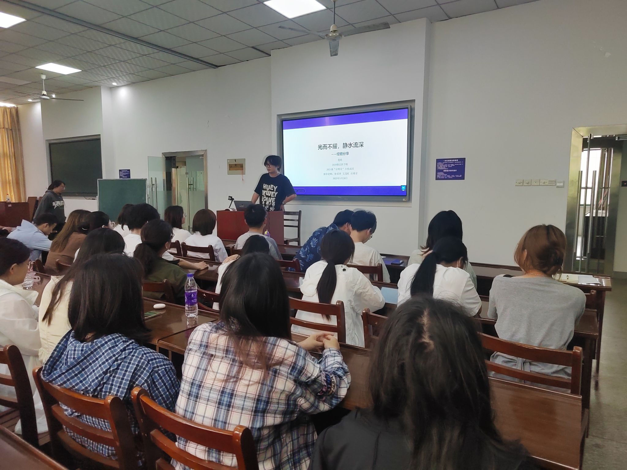 为深入推进优良学风建设,充分发挥榜样示范引领作用,帮助在校生明确学习目标,提前进行职业规划,法医学院于5月28日下午在法医楼大教室成功举办毕业生经验交流会。本次活动特邀四名在考公、考研、直博中表现优异的2025届毕业生向学弟学妹传经送宝,吸引了120余名学生参与,现场气氛热烈。
