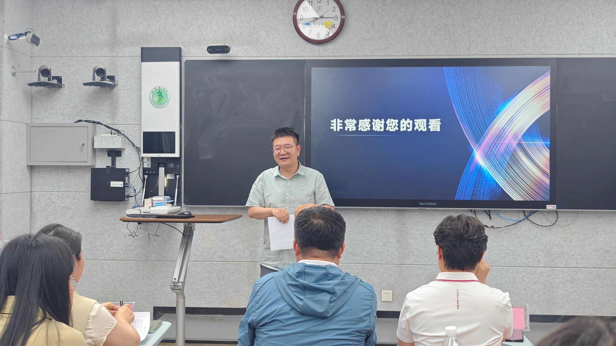 此次活动7名参赛选手依次上台进行教学展示,评委根据其授课过程、PPT展示、教案等进行综合评分。各参赛选手授课准备充分、条理明晰,或根据影像示例,直观清楚;或引用序言,层层递进;或插入教学游戏与视频,更添趣味。赛后,评委老师从参赛教师的教学设计、教学内容、课程思政、教态、板书、教学互动、PPT制作等方面进行了点评。