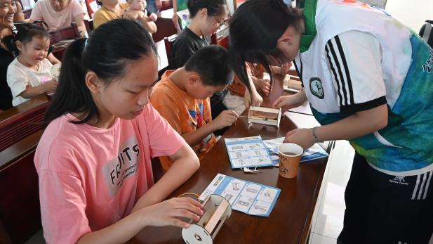 科技手工融趣味,文化传承润童心。为激发乡村儿童创新思维、传承传统工艺文化,“芦花”志愿服务队开展“竹木科技小工坊”活动。志愿者先通过动画演示竹木结构原理,再分发竹片、麻绳等材料,指导孩子们制作简易桥梁、小推车等模型。在动手实践中,孩子们既掌握了基础力学知识,又感受到传统材料的现代价值,现场充满探索与欢笑。