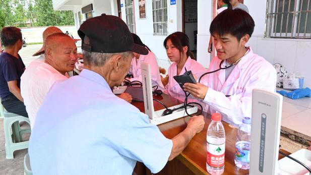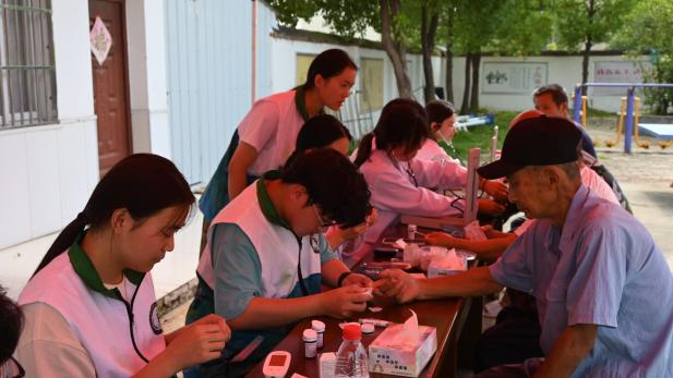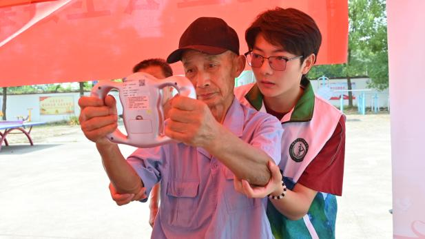义诊服务接地气,健康关怀零距离。为落实健康中国战略,将公共卫生专业知识转化为实际服务,“芦花”志愿服务队设立义诊点,志愿者们分工开展血压、血糖、体脂检测,细致记录数据并提供个性化健康建议。活动开展的同时,还为青少年开展视力检查,并同步讲解用眼卫生知识。活动现场,志愿者耐心解答村民关于慢性病用药、夏季养生等问题,用贴心服务架起健康沟通的桥梁。