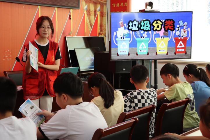 垃圾分类小课堂:变废为宝“好方法”。“奶茶杯盖是可回收物,杯身要清空后投放……”志愿者结合居民日常垃圾种类,详细解释了厨余、可回收、有害等垃圾的分类标准以及不同处理要求。活动现场还精心设置了“模拟投放”游戏,孩子们拿着“旧电池”“香蕉皮”等卡片精准投放,在欢笑中学会垃圾分类。