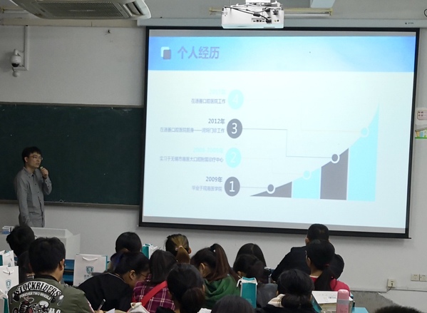 房永兴通过播放宣传视频和PPT讲解等方式,让同学们了解无锡通善口腔医院的规模、师资力量等情况,并表示无锡通善口腔医院愿意为口腔医学专业的学生提供实习和就业机会。同时就同学们关心的就业等问题,房永兴也作了详细解答,气氛热烈,秩序井然。