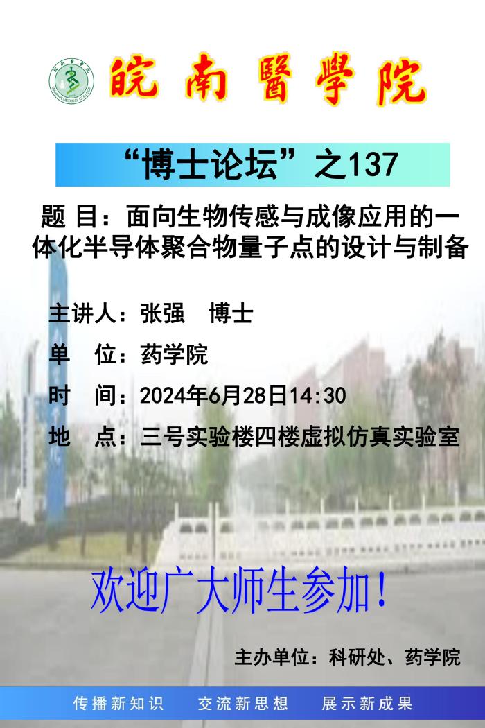 博士论坛之137:面向生物传感与成像应用的一体化半导体聚合物量子点的设计与制备